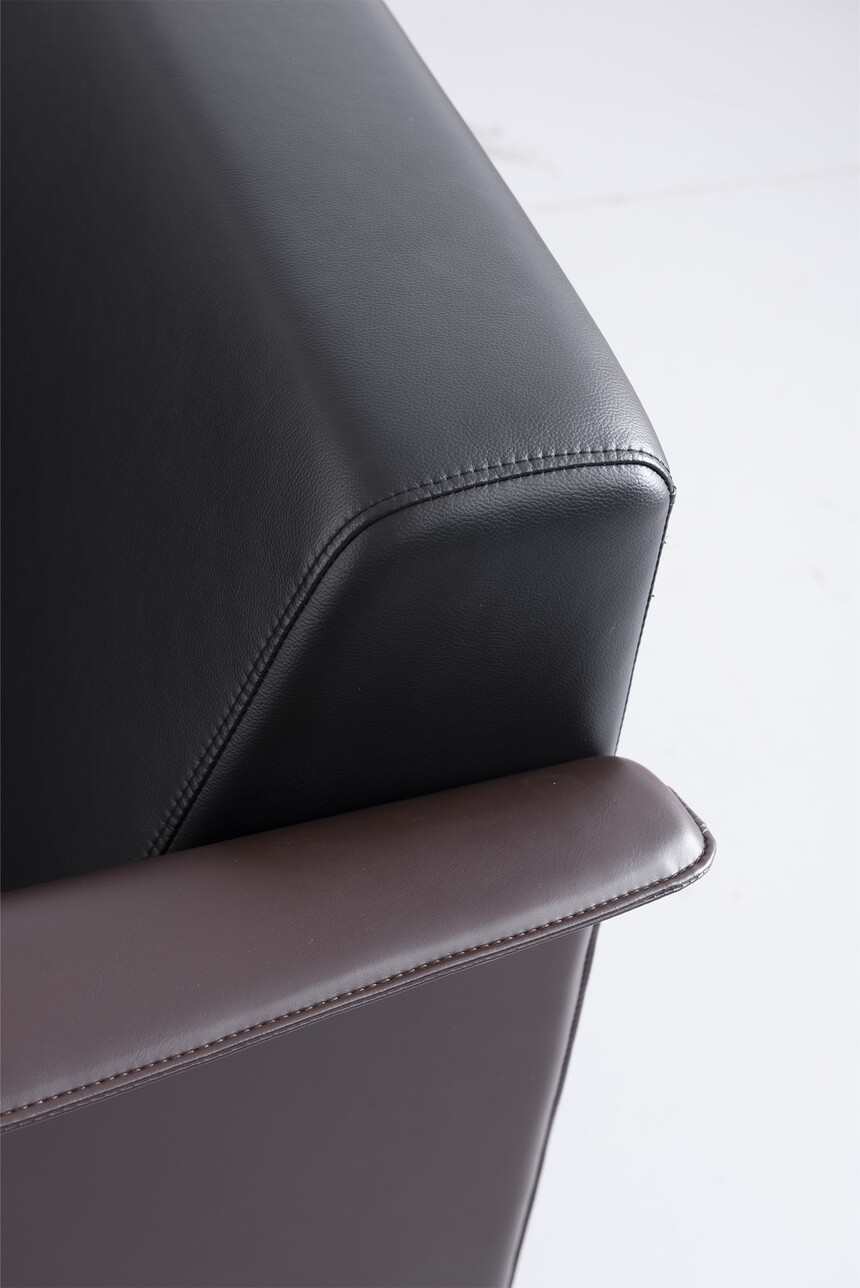1、面料:选用高级超纤皮,经液态浸色及防潮、防污等工艺处理、皮面更加柔软舒适、光泽持久性好,纹理细腻,富有弹性。2、实木板框架:优质进口含水率低9%以下的硬木木方及5mm的多层夹板,经防虫、防腐等化学处理。3、海绵:采用杜邦公司的PU成型发泡高密度海绵高回弹海绵,表面有一层保护面,可防氧化,防碎,经过HD测试永不变形,靠背密度≧27kg/m3,座垫密度≧36kg/m3,回弹性≧35%,拉伸强度95kpa,撕裂强度达3.3N/cm,断裂伸长率达185%,压陷硬度190N。4、工艺:采用人体工学设计,坐感舒适!