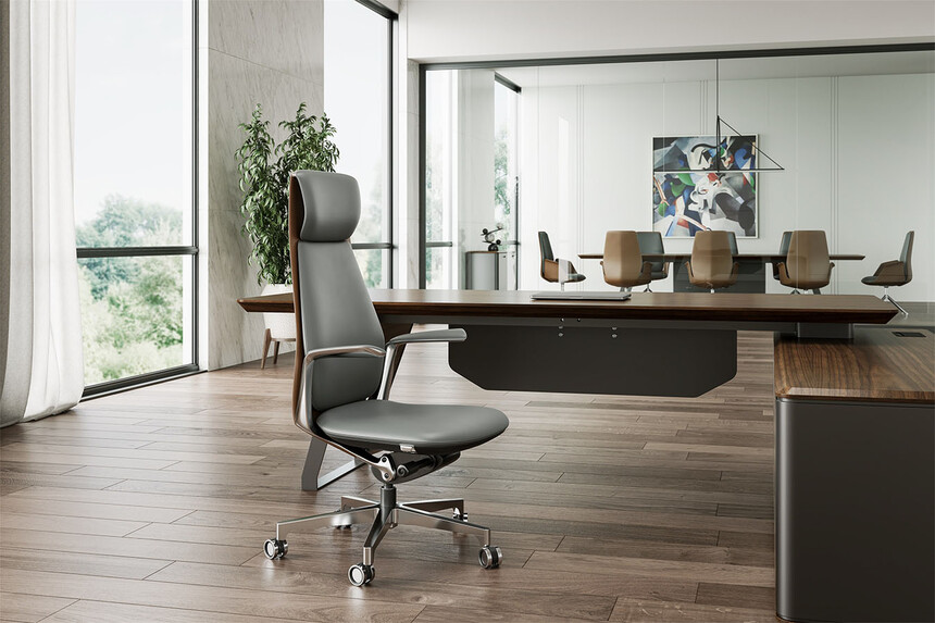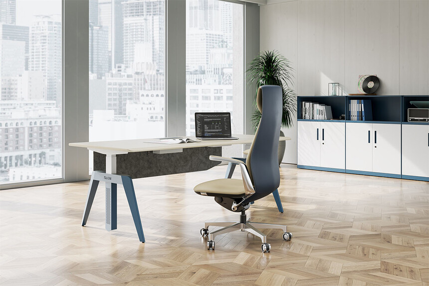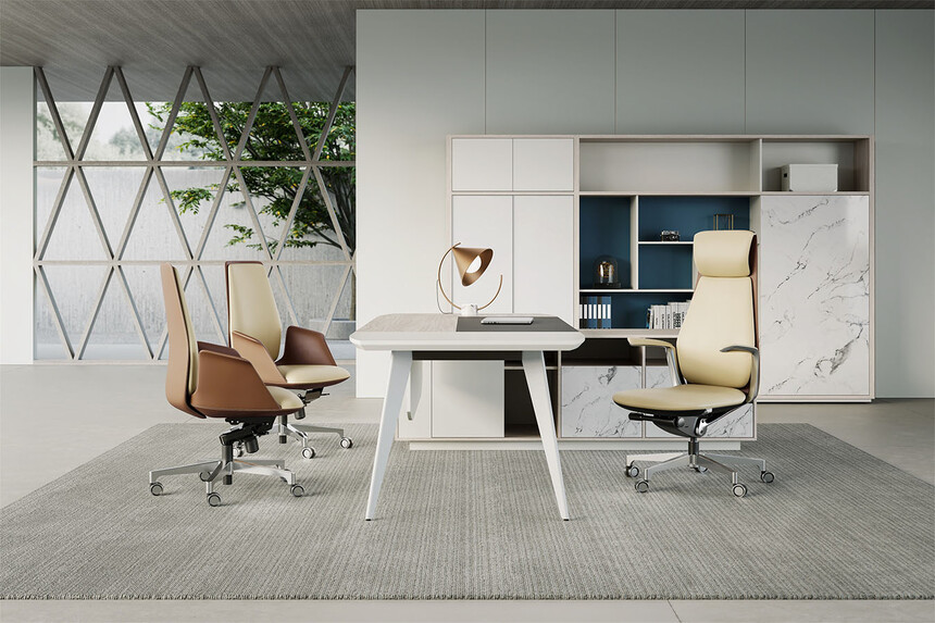 面料:选用意大利"阳光"牌小牛皮(1.0mm厚),经液态浸色及防潮、防污等工艺处理,皮面更加柔软舒适,光泽持久性。            辅料:采用杜邦公司的PU成型发泡高密度海绵,表面有一层保护面,可防氧化,防碎,经过HD测试永不变形。                            配件:采用韩国SHS气压棒(受力250kg);伸缩30万次不漏气。                                                                                  底盘:四级锁定靠背单独倾仰底盘