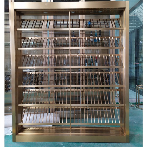 定制钛金不锈钢酒柜酒窖轻奢风_不锈钢酒柜制品生产厂家图
