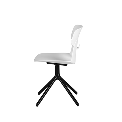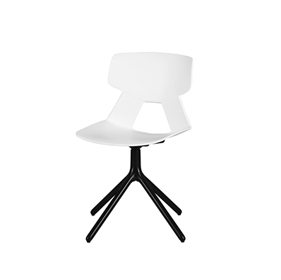 ELET是由基本的几何元素构成,其面交错给椅背留出一个镂空,并向后弯折出一个节省置物空间的小小功能部件——挂钩。背靠内凹,座面微陷,入座体验极佳。清爽的外观设计和实用的小功能,是许多空间场所的适用选择。