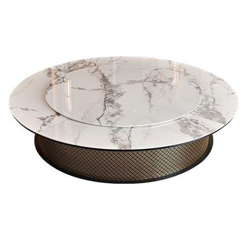 酒店豪华轻奢大理石台面电动餐桌大圆桌图