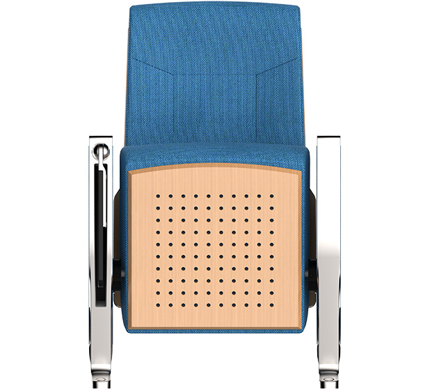 3.在保证观众舒适度的前提下,背垫高不超过1015mm,增加椅背板的声反射面积,改善座椅的吸声;座底板根据需要打吸音孔,使座椅的吸声量在不同的上座率尽可能保持一致。