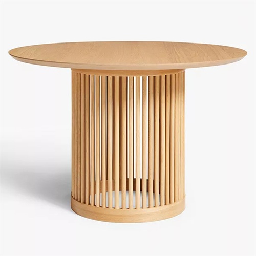餐厅家具厂家为您展示湘菜馆中餐厅新中式简朴实木餐桌图片展示\价格说明\定做服务。这款湘菜馆中餐厅新中式简朴实木餐桌,采用实心橡木和橡木贴面制作了这款圆形餐桌,具有令人放心的坚固和耐磨饰面。餐桌底座由主轴杆制成,使桌子具有触觉边缘并增加了光感。此外,保护漆涂层突出了木材的自然色彩和色调。